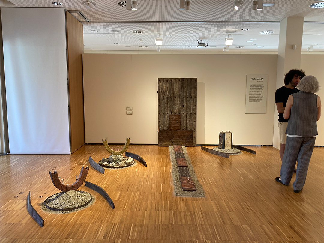 Anna Sínia, mitjançant la cistelleria, amb les seves obres Territori teixit i Teixint territori explora la relació entre les persones i la terra de secà, simbolitzant resistència i creixement a través de l’esbarzer. Núria Albà, amb Camins i Hàbitats, reflexiona sobre la simbiosi entre la natura i les persones, utilitza les sendes com a símbols de connexió i de preservació dels hàbitats. Mentre que Ester Ramón, amb Fites, explora els senyals dels camins com a símbols de recerca personal. Núria Rion, a través de la sèrie Espaitemps, els tracta com a recorreguts de memòria i identitat. Finalment, Montserrat Pallarès, amb Recreo 11, les seves rèpliques i Acabant de sembrar utilitza els records de la infantesa per crear una visió única del paisatge, posant de manifest la connexió entre la natura, la memòria i el pas del temps.